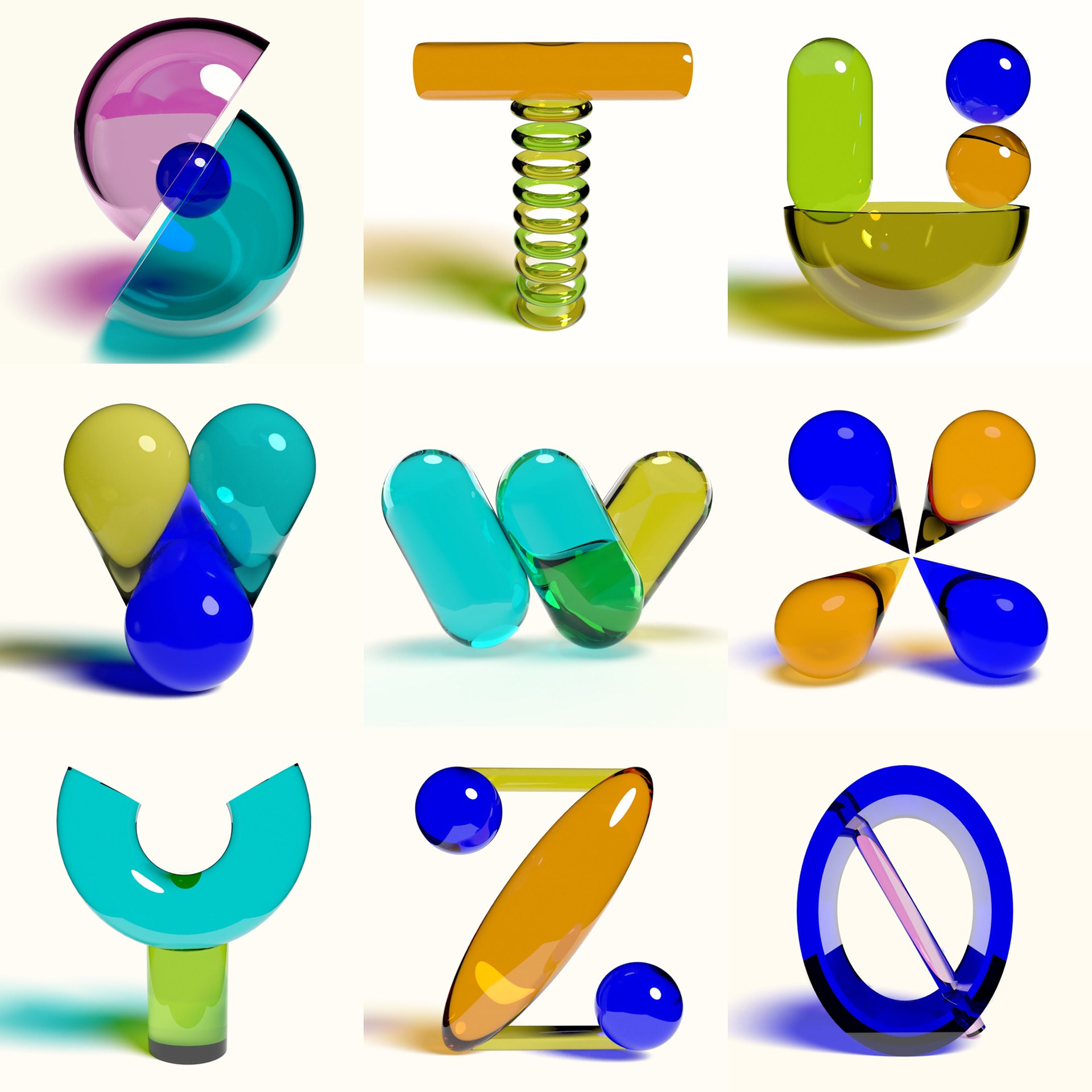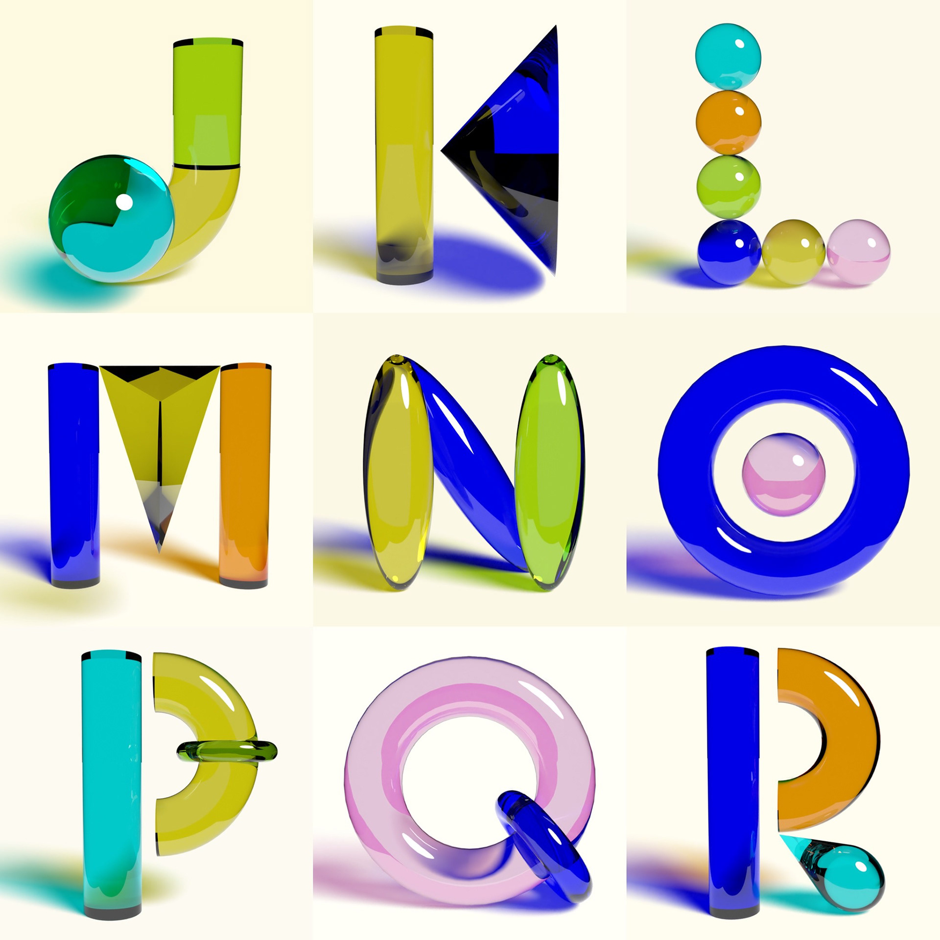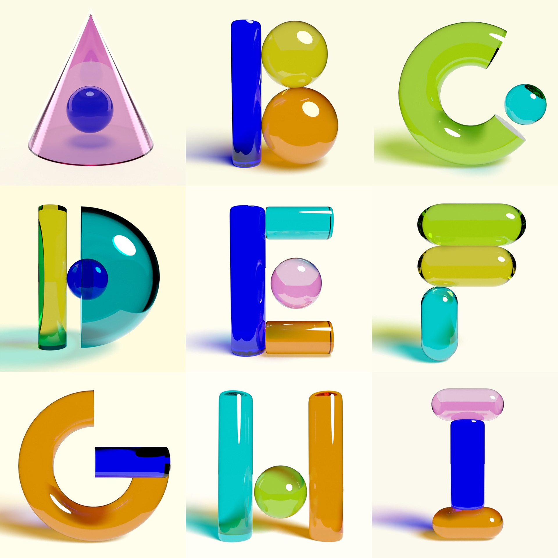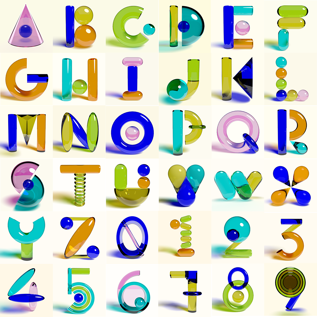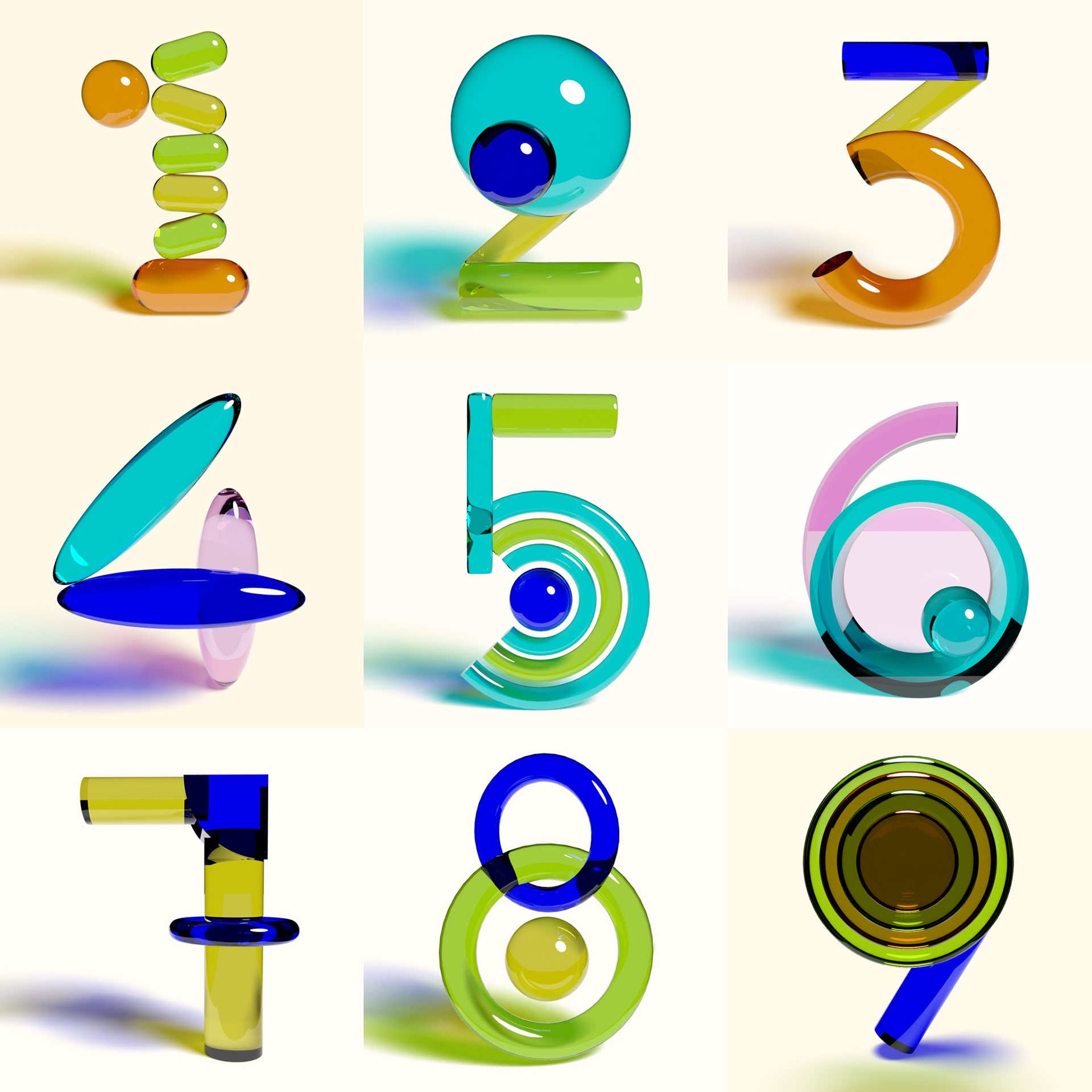 Colourful and playful 3D letters and numbers rendered in Adobe Dimension